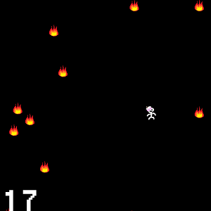 A simple game where moving fireballs gets added to the screen. The player will walk to wherever you click. Stay alive as long as possible.